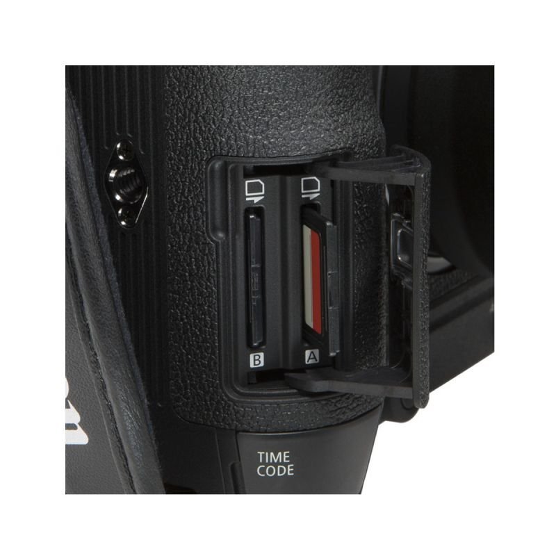 Las dos ranuras para tarjetas SD UHS-II permiten grabar simultáneamente en XF-AVC o MP4, garantizando seguridad y flexibilidad en el terreno.