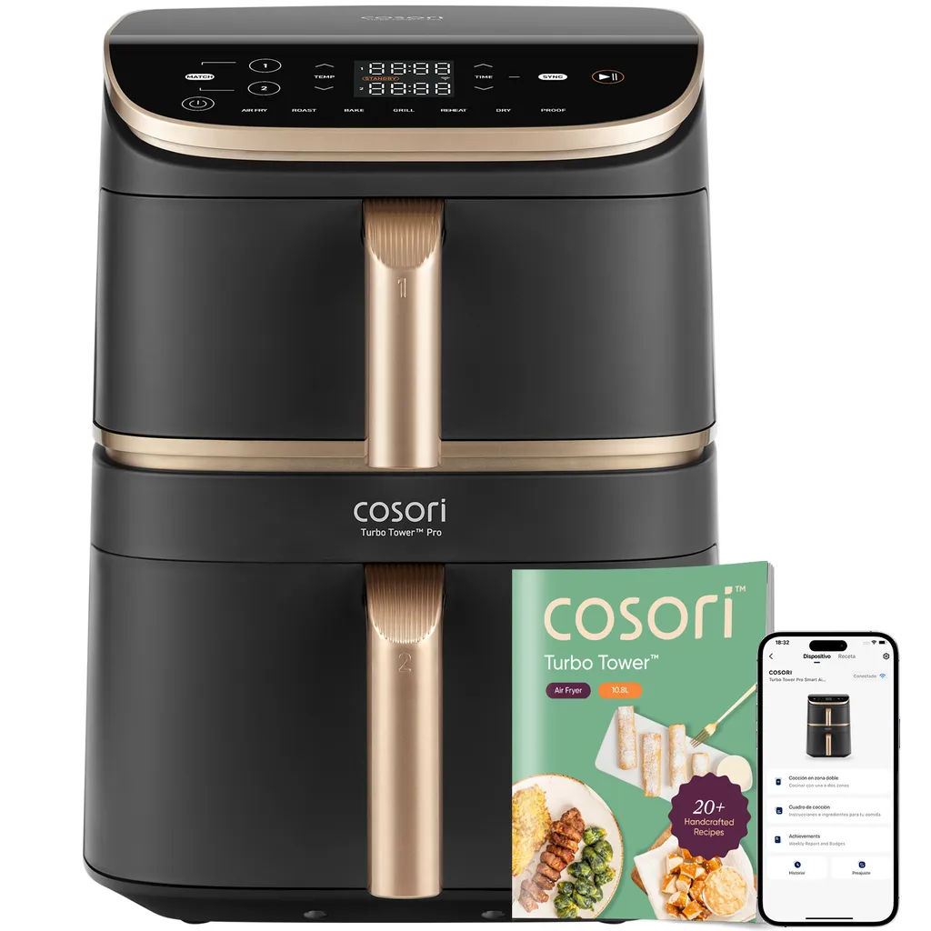 La Cosori Turbo Tower Pro 10,8 L combina potencia, compacidad y una cocción versátil gracias a su diseño de doble