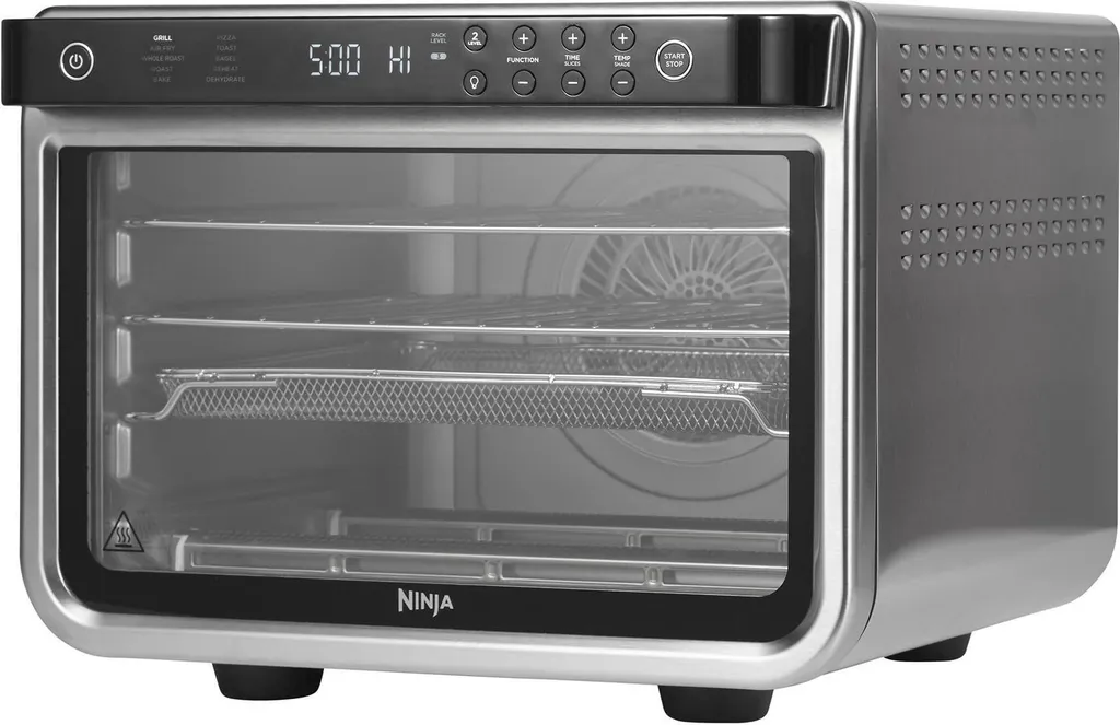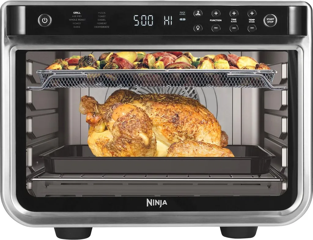 El Ninja DT200EU es un horno multifunción de gran capacidad capaz de cocinar en dos niveles simultáneamente, ideal